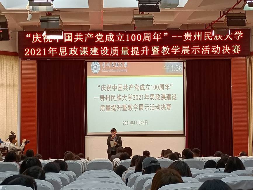 公海·赌船(中国)唯一官方网站 于2021年11月25日下午在花溪校区十五栋圆形会议中心举行“庆祝中国共产党成立100周年”——贵州民族大学2021年思政课建设质量提升暨教学展示活动决赛。校党委副书记张鹏程莅临比赛现场,本次比赛邀请到贵州大学公海·赌船(中国)唯一官方网站 副院长崔东明副教授,贵州师范大学公海·赌船(中国)唯一官方网站 教授委员会主席、博士生导师权麟春教授,贵州财经大学公海·赌船(中国)唯一官方网站 院长何伟福教授,贵州医科大学公海·赌船(中国)唯一官方网站 院长杨成兰教授,贵州中医药大学公海·赌船(中国)唯一官方网站 院长杨近平教授,贵州师范公海·赌船 公海·赌船(中国)唯一官方网站 院长金凤教授,公海·赌船(中国)唯一官方网站 院长周俊教授作为专家评委,花溪校区各公海·赌船 10名学生代表作为学生评委。