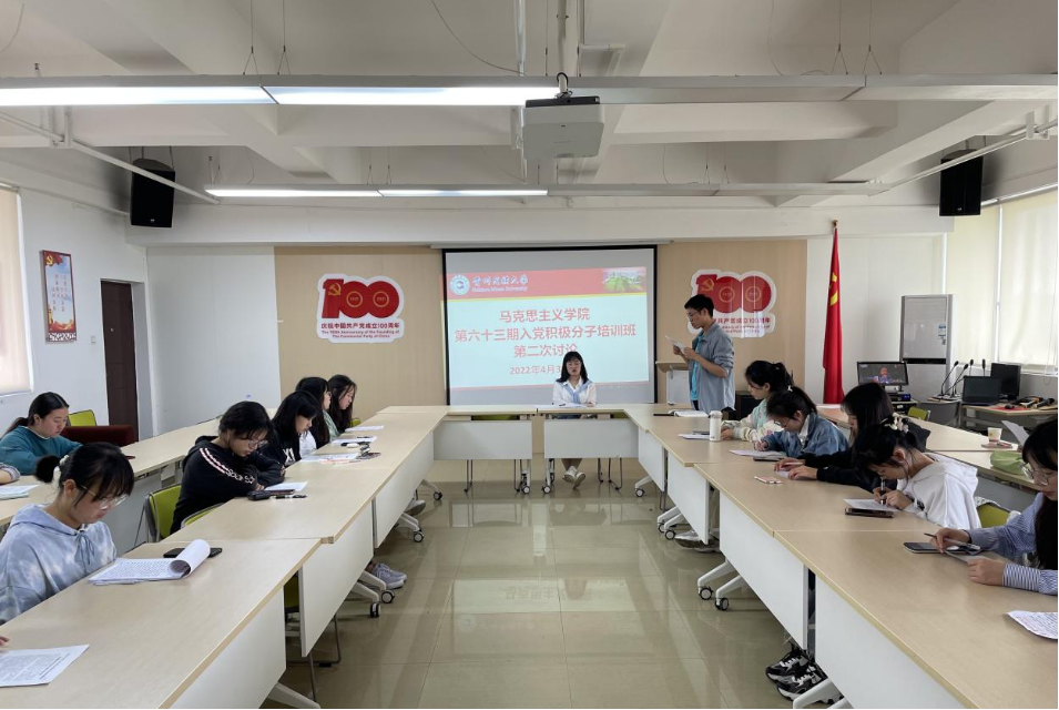 2022年4月28日由公海·赌船 正处级组织员付江红同志和本期培训班指导老师尉迟艳同志组织全体入党积极分子开展小组第一次讨论会,讨论主题为“举一个党史故事,并由此谈谈如何端正入党动机,在思想上向党组织靠拢”。学员们积极参与讨论,并结合自身学习和生活实际依次发言,效果良好。