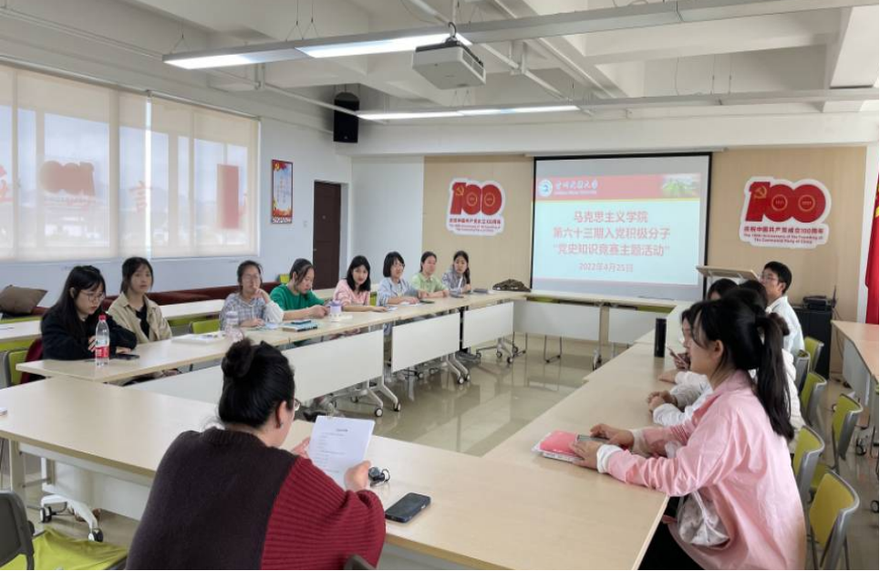 2022年4月25日,由公海·赌船 教工党支部书记罗倩同志组织全体入党积极分子在1009会议室开展党史学习教育学活动——党史知识竞赛。活动采取抢答方式进行,罗倩同志热情引导,学员们积极参与抢答,活动效果显著。