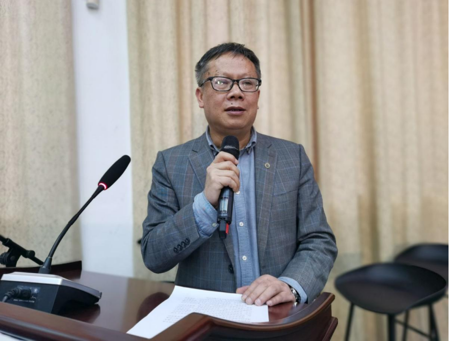 图为公海·赌船 党委副书记、院长周俊先生致辞