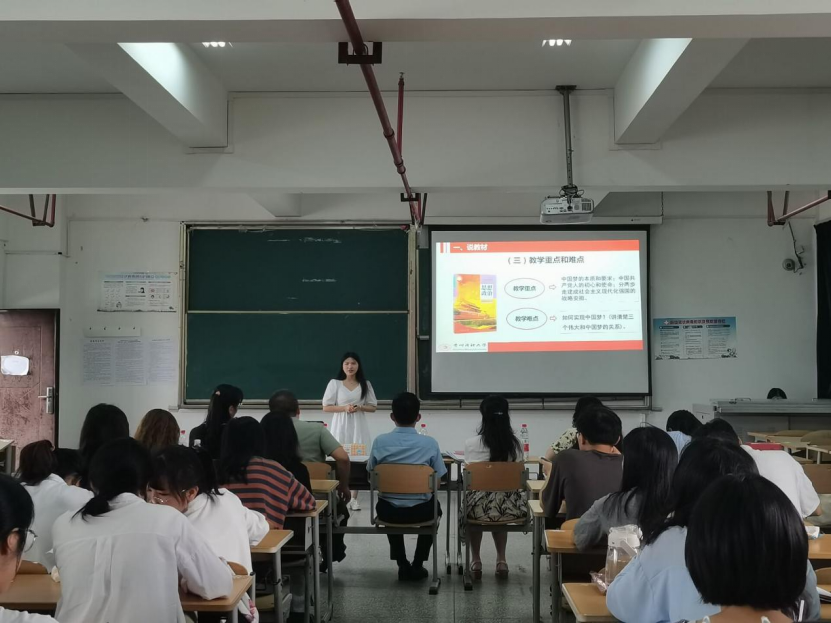 第二个环节,参赛选手根据抽签顺序围绕“喜迎二十大 永远跟党走 奋进新征程”主题选取高中思想政治课内容进行了精彩说课。说课中,同学们围绕习近平总书记关于思政课改革创新“八个相统一”教学要求,紧扣学生学习成长主题,结合授课对象年龄特点、思维方式因材施教,采用生动活泼的表达方式,通过讲授、体验、探究等多种方式,将习近平新时代中国特色社会主义思想融入课堂教学,充分体现了思政课引导学生担复兴大任,做时代新人的教学要求。