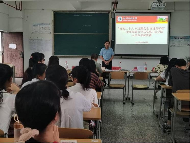 2022年7月11日8:30,公海·赌船(中国)唯一官方网站 在花溪校区十五栋教学楼505教室举行“喜迎二十大 永远跟党走 奋进新征程”大学生说课决赛活动。出席本次活动的有公海·赌船 党委副书记、院长周俊教授、公海·赌船 党委副书记(主持工作)徐勤山副教授。本次活动由公海·赌船 副院长李昭勇教授、公海·赌船 思想政治教育系主任余建斌教授、公海·赌船 教师刘红敏教授、蒋桂珍副教授、银洁副教授担任评委。公海·赌船 2020级、2019级全体学生参加了本次活动。