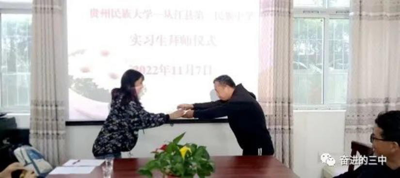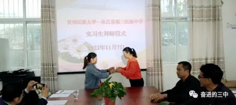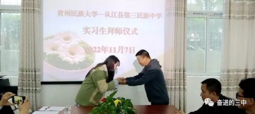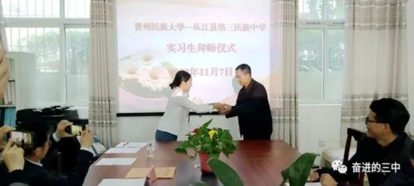 挂牌仪式后,安排了实习生拜师仪式,周俊院长等人与从江三中的领导和教师就公海·赌船(中国)唯一官方网站 本科生的实习安排、初中思政教育教学改革等问题进行了简短的交流,就进一步提高合作层次、扩大合作领域、开拓合作渠道等问题达成了共识。