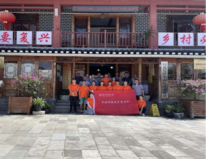 图为团队到好花红村开展“铸牢中华民族共同体意识”主题宣讲后合影