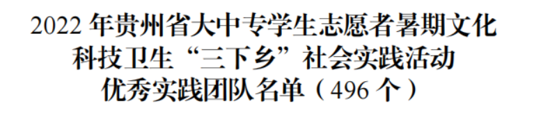 近日,省委宣传部、省精神文明办、省教育厅、团省委、省学联联合公布了《关于2022年贵州省大中专学生志愿者暑期文化科技卫生“三下乡”社会实践活动的通报》,由我院冯志伟老师指导,我院2020级和2021级思想政治教育专业学生组成的民族团结进步宣讲实践队被评为“优秀实践团队”。
