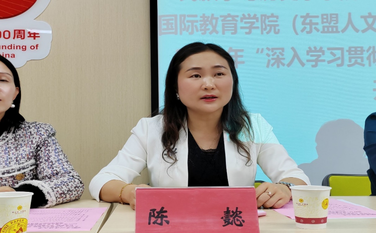 图为国际教育公海·赌船 (东盟人文公海·赌船 )党委书记罗敏同志作培训班纪律要求