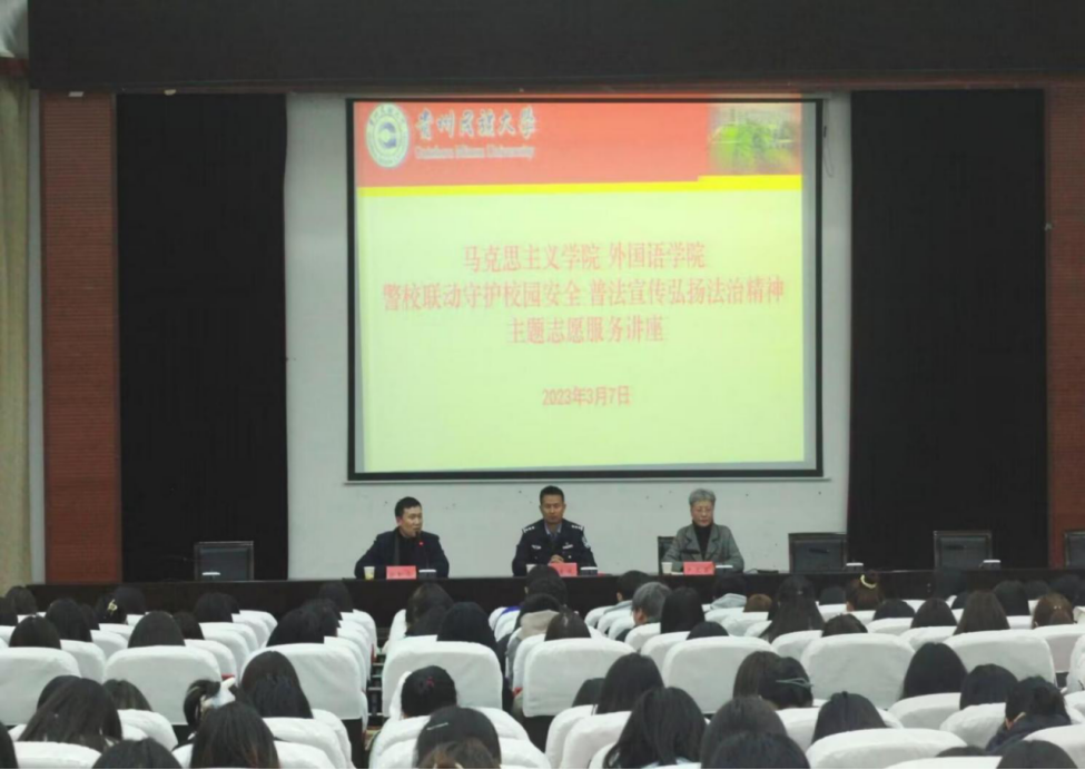 2023年3月7日晚7点,公海·赌船(中国)唯一官方网站 、外国语公海·赌船 在花溪校区15栋圆形会议室举办安全教育讲座,主讲人为松山派出所民警、法治辅导员赵普林。讲座由公海·赌船(中国)唯一官方网站 党委副书记(主持工作)徐勤山主持,外国语公海·赌船 党委书记卢文芸、辅导员翟利沙列席,公海·赌船(中国)唯一官方网站 、外国语公海·赌船 全体学生参加。