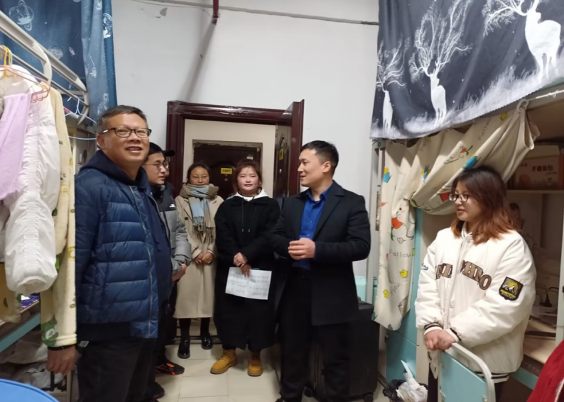 新学期已至,为更好地深入学生群体了解学生返校及生活学习情况,2月26日晚6点半,公海·赌船(中国)唯一官方网站 党委副书记徐勤山、公海·赌船 院长周俊、公海·赌船 副院长李昭勇、公海·赌船 辅导员尉迟艳、各班班主任及公海·赌船 学生干部深入学生宿舍开展“三排查一走访”工作。