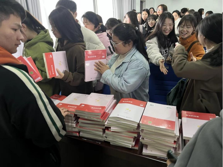 最后,贵州粉笔教育培训机构向参会学生赠予面试相关书籍。