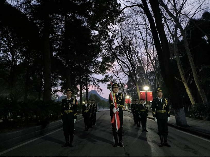 2023年2月27日星期一。迎着初春的第一缕微风,晨曦穿过重重云霞而来,映照着翻滚的晨雾,四周的景物轮廓渐渐清晰起来。贵州民族大学国旗护卫队和公海·赌船(中国)唯一官方网站 师生已在行政楼前集合完毕,等待参加“向国旗敬礼”升国旗仪式。他们着装整齐,精神焕发,整齐列队,静待仪式开始。