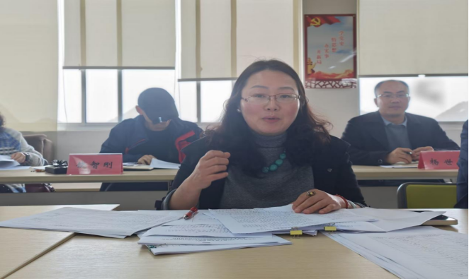 图为教工党支部书记罗倩主持会议