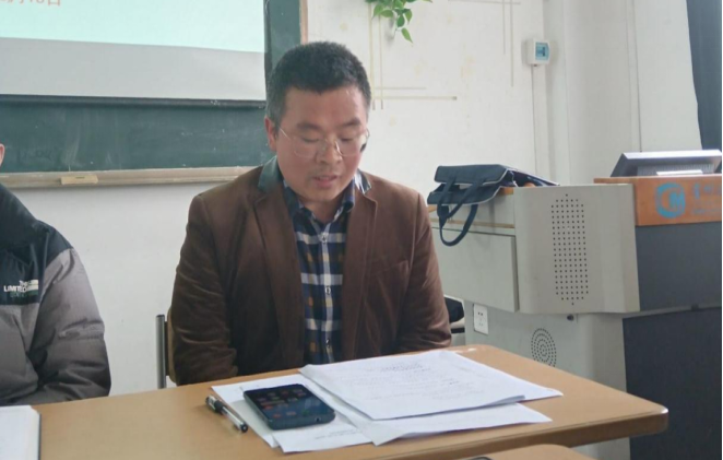 图为师生联合党支部书记余建斌主持会议