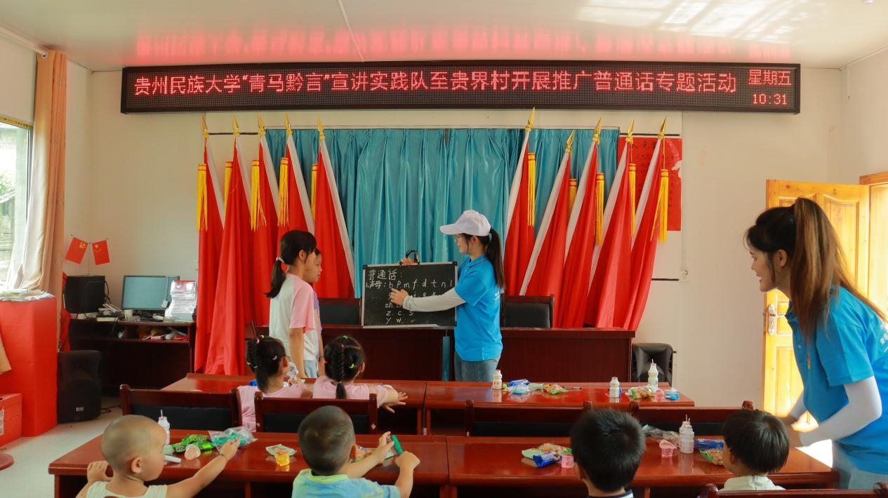 为进一步营造关爱鳏寡老人、留守儿童的氛围以及促进普通话在乡村的运用与推广,引导学生感受文化魅力,提高语言素养、厚植文字底蕴,促进全社会树立语言文字规范意识,公海·赌船(中国)唯一官方网站 “青马黔言”宣讲实践队,于7月26日赴镇远县金堡镇贵界村开展“三下乡”社会实践活动。